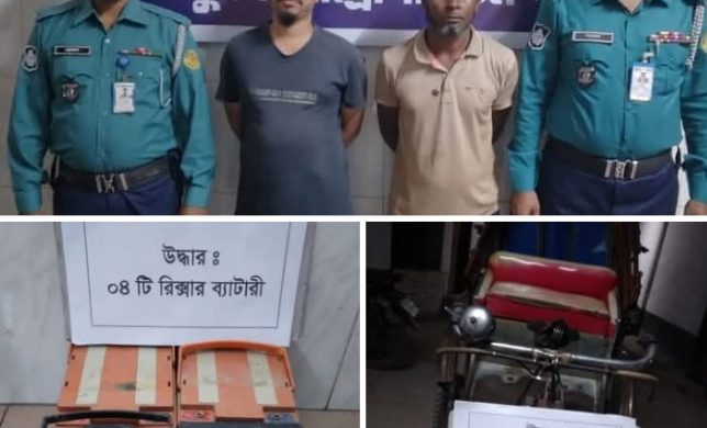 হরিণটানা থানা পুলিশের একটি টিম মঙ্গলবার, ১১ মার্চ ২০২৫ তারিখ বিকালে জিরোপয়েন্ট মোড় এলাকায় অভিযান চালিয়ে ১) আব্দুল হামিদ (৪৫), পিতা-আব্দুল মজিদ, সাং-ময়লাপোতা, থানা-সোনাডাঙ্গা মডেল, এ/পি সাং-কৃষ্ণনগর, থানা-লবণচরা এবং ২) নাজমুল হাসান (২৪), পিতা-মোঃ দেলোয়ার হোসেন, সাং-সিদ্দিকিয়া মহল্লা শতরুপার মোড়, থানা-সোনাডাঙ্গা মডেল, খুলনা’দ্বয়কে গ্রেফতার করে। তাদের হেফাজত হতে ব্যাটারী বিহীন রিক্সা এবং চোরাই রিক্সার ০৪ টি ব্যাটারী উদ্ধার করা হয়। গ্রেফতারকৃত আসামীদের বিরুদ্ধে হরিণটানা থানার মামলা নং-০৪, তারিখ-১১/০৩/২০২৫ খ্রিঃ, ধারা-৩৭৯ পেনাল কোড রুজু করা হয়েছে।
