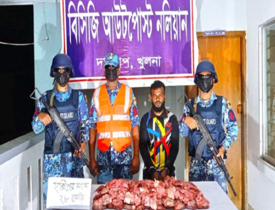 কোস্ট গার্ড জানান, গোপন সংবাদের ভিত্তিতে ১৩ মার্চ রাতে বাংলাদেশ কোস্ট গার্ড পশ্চিম জোন অধীনস্থ বিসিজি আউটপোস্ট সুন্দরবন সংলগ্ন নলিয়ানের বালুর মাঠ এলাকায় বিশেষ অভিযান পরিচালনা করা হয়। এসময় কোস্ট গার্ডের উপস্থিতি বুঝতে পেরে পালিয়ে যাওয়ার সময় ধাওয়া করে ইয়াসিন গাজী নামেন এক ব্যক্তিকে আটক করা হয়। এসময় সুন্দরবন থেকে পাঁচার করে আনা ২৮ কেজি হরিণের মাংসসহ ওই হরিণ শিকারীকে আটক করা হয়।