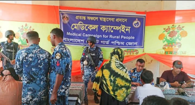 বাগেরহাটের মোংলায় বিনামূল্যে চিকিৎসা সেবা এবং জনসচেতনতা মূলক কার্যক্রম পরিচালনা করেছে কোস্ট গার্ড।
