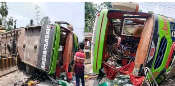 ডুমুরিয়ায় বাস নিয়ন্ত্রণ হারিয়ে উল্টে পড়ে গুরুতর আহত ৪