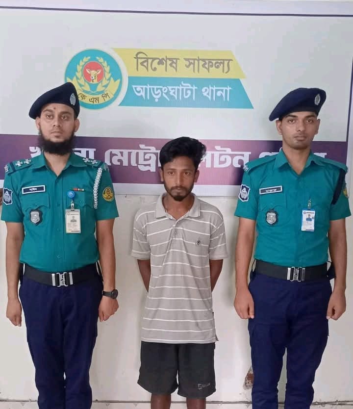 আড়ংঘাটা থানা পুলিশ ১১ মে ২০২৫ তারিখ লতা মধ্যপাড়া সংলগ্ন এলাকা থেকে মাদক কারবারি ১) আকাশ ঢালী (২২), পিতা-সঞ্জয় ঢালী, সাং-ঢালী বাড়ি, লতা, থানা-আড়ংঘাটা, খুলনা। ৫০ গ্রাম গাঁজাসহ হাতেনাতে আটক করেছে।