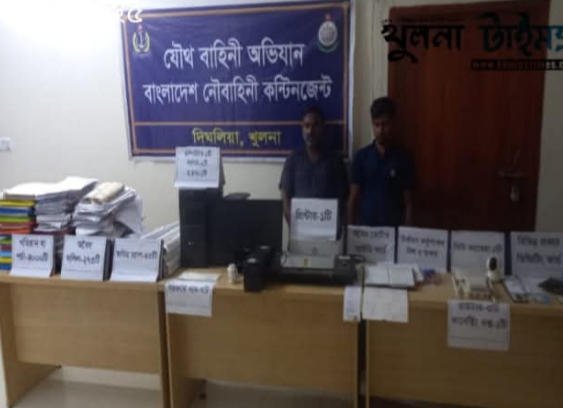 খুলনার দিঘলিয়া উপজেলার বারাকপুর ইউনিয়নের লাখোহাটি এলাকায় অভিযান চালিয়ে ভুয়া দলিল, জাল খতিয়ান, নকল সীলমোহর ও সরকারি কাগজপত্র তৈরির সরঞ্জামসহ প্রতারক চক্রের দুই সদস্যকে আটক করেছে বাংলাদেশ নৌবাহিনী ও দিঘলিয়া থানা পুলিশ। বৃহস্পতিবার দুপুর ১টা ১৫ মিনিটে লাখোহাটি গ্রামের তিন রাস্তার মোড় এলাকার ‘তুরজাউন টেলিকম অ্যান্ড স্টুডিও’ নামক প্রতিষ্ঠানে এ যৌথ অভিযান পরিচালিত হয়।