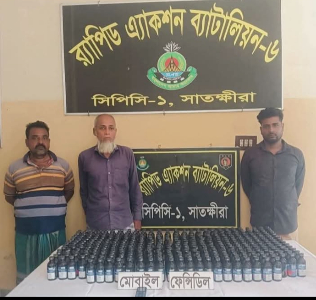 র্যাবের অভিযানে সাতক্ষীরার নলতা থেকে ৩৯৮ বোতল ফেনন্সিডিলসহ গ্রেপ্তার ৩