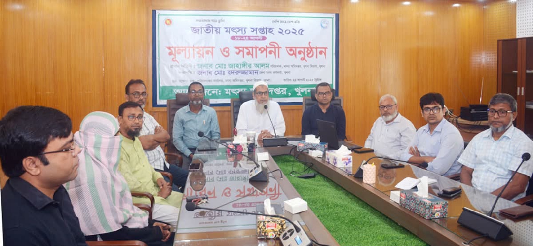 জাতীয় মৎস্য সপ্তাহের মূল্যায়ন ও সমাপনী অনুষ্ঠান আজ (রবিবার) সকালে মৎস্য অধিদপ্তরের খুলনা বিভাগীয় কার্যালয়ের সম্মেলনকক্ষে অনুষ্ঠিত হয়। সমাপনীতে প্রধান অতিথি ছিলেন মৎস্য অধিদপ্তরের বিভাগীয় কার্যালয়ের পরিচালক মোঃ জাহাঙ্গীর আলম।