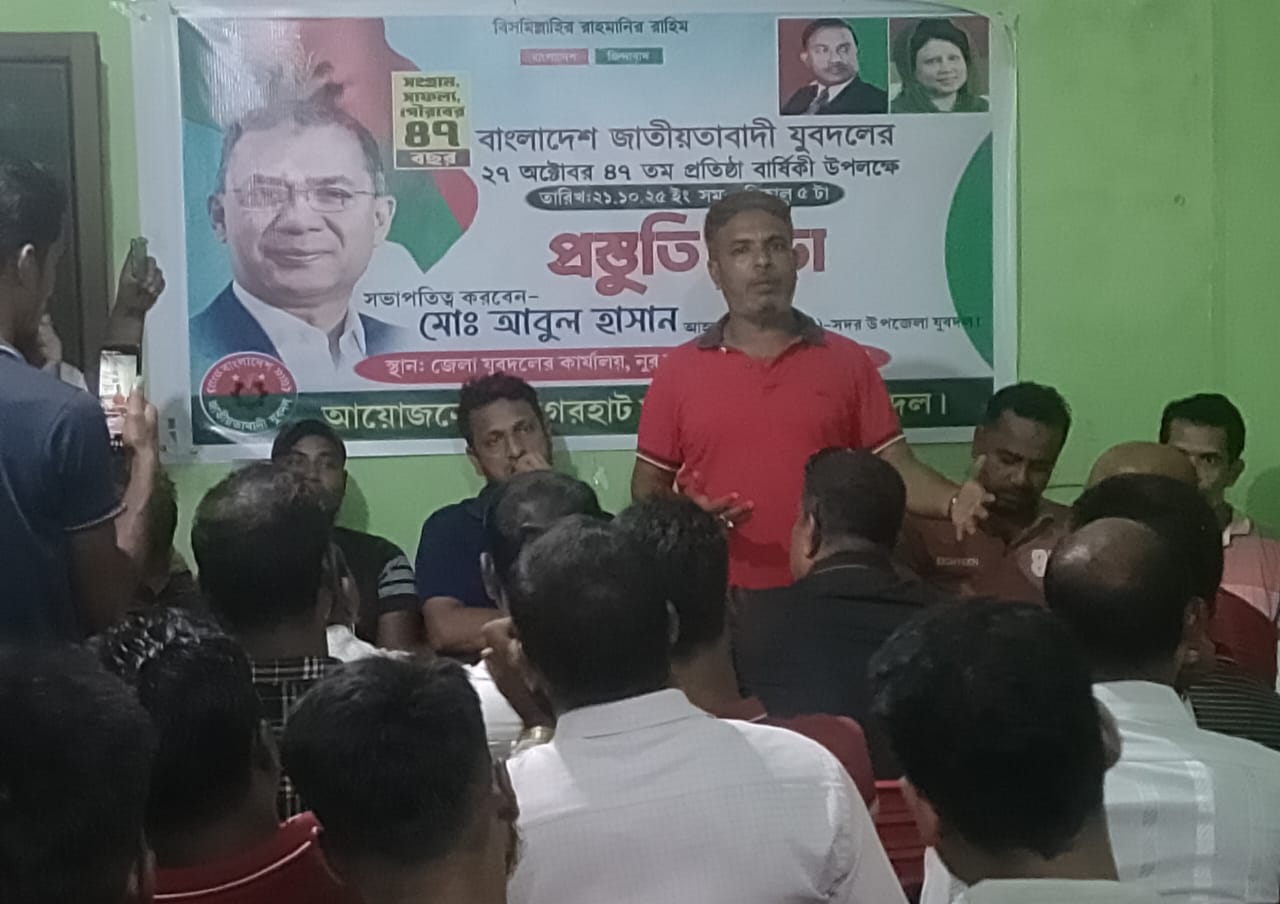 বাগেরহাটে যুবদলের ৪৭ তম প্রতিষ্ঠা বার্ষিকী উপলক্ষে প্রস্তুতি সভা অনুষ্ঠিত।