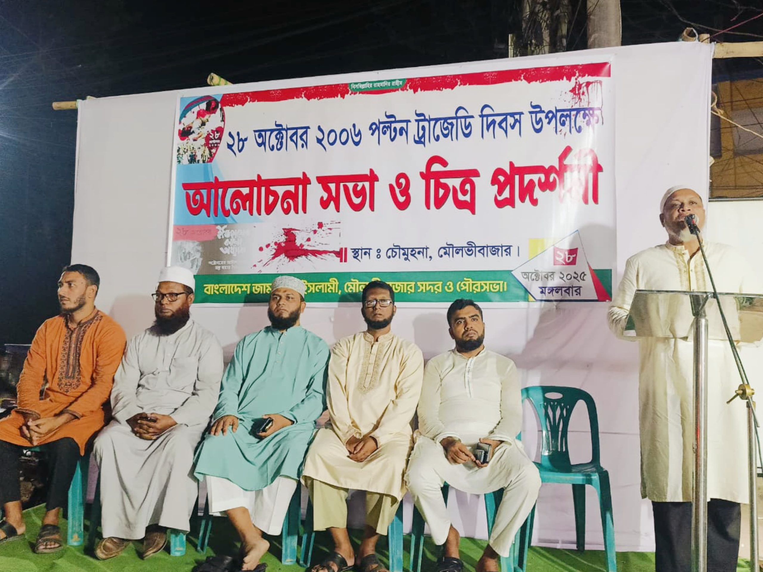 ২০০৬ সালের ২৮ অক্টোবরের ঐতিহাসিক পল্টন ট্র্যাজেডি দিবস উপলক্ষে মৌলভীবাজারে আলোচনা সভা ও চিত্র প্রদর্শনী অনুষ্ঠিত হয়েছে। মঙ্গলবার (২৮ অক্টোবর ২০২৫) বাদ মাগরিব শহরের চৌমোহনা এলাকায় বাংলাদেশ জামায়াতে ইসলামী মৌলভীবাজার সদর উপজেলা ও পৌর শাখার যৌথ উদ্যোগে কেন্দ্রীয় ঘোষিত কর্মসূচির অংশ হিসেবে এ আয়োজন করা হয়।