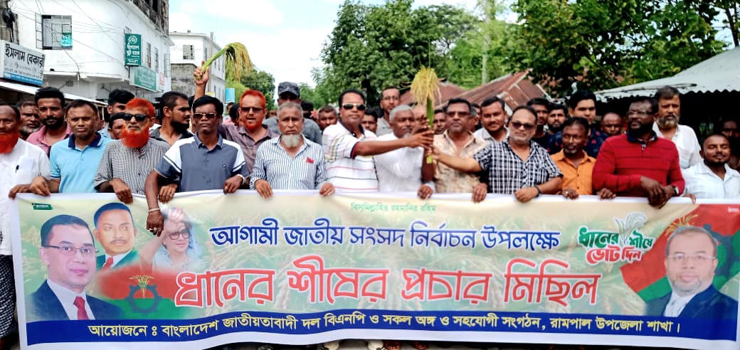 রামপাল, মোংলা ও ফকিরহাটের গণমানুষের মানবিক নেতা বাগেরহাট জেলা বিএনপি"র যুগ্ম আহবায়ক লায়ন ড. শেখ ফরিদুর ইসলামের পক্ষে এই গণমিছিল করেন, রামপাল উপজেলা বিএনপিসহ অঙ্গসংগঠনের নেতৃবৃন্দ। মিছিলটি রামপাল সদর থেকে শুরু করে উপজেলার গুরুত্বপূর্ণ সড়ক প্রদক্ষিন করে প্রেসক্লাবের সামনে এসে শেষ হয়। এসময় বক্তব্য দেন, উপজেলা বিএনপি"র সাংগঠনিক সম্পাদক মাসুদুর রহমান পিয়াল, সাবেক উপজেলা বিএনপি"র যুগ্ম আহবায়ক শেখ ফিরোজ কবির, সাবেক সহ-সভাপতি তায়েব নূর, আব্দুলাহ আল আজমি, ফারুক আহমেদ, কাজী তারিকুল ইসলাম, কাজী আজিয়ার রহমান, শাহজালাল গাজী, হুমায়ুন কবির হিমু, মোল্লা ফারুক হোসেন টিটু, আবু সুফিয়ান টুটুল, হাওলাদার আবু রাজিন, হাসান আলী বাবু, ইমরান শেখ, হাসান শেখ, নাজমুল শেখ, লিটন লস্কর, মোঃ গাউস উদ্দিন, শেখ সোলাইমান, শেখ শরিফুল ইসলাম, শেখ আবুল বাশার, শেখ ইসমাইল হোসেন, গোলাম ফকির, সাবিনা বেগম, মোঃ রবিউল ইসলাম, ইয়াসিন আরাফাত প্রমুখ।
