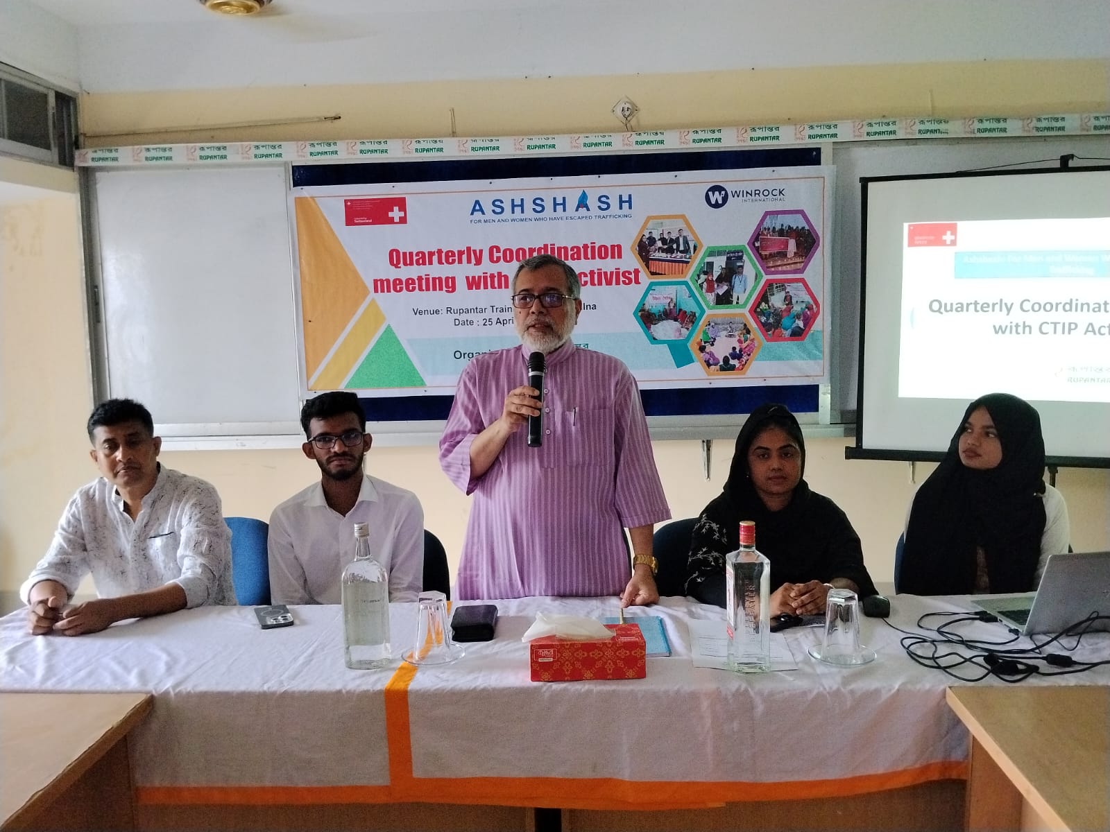 নিজস্ব প্রতিনিধি: আশ্বাস প্রকল্পের আওতায় কাউন্টার ট্রাফিকিং ইন পারসন (সিটিআইপি) অ্যাক্টভিস্টিদের ত্রৈমাসিক সভা ২৫ এপ্রিল শনিবার খুলনা রূপান্তর ট্রেনিং সেন্টারে জেলা সিটিআইপি সদস্য মো: আলভী শেখের সভাপতিত্বে অনুষ্ঠিত হয়। সভায় স্বাগত বক্তৃতা করেন রূপান্তরের নির্বাহী পরিচালক স্বপন কুমার গুহ। সিটিআইপি সদস্য আয়শা আক্তার মেঘলার সঞ্চলনায় পূর্বের কাজের পর্যালোচনা, মাঠ পর্যায়ে কাজ করার ক্ষেত্রে সমস্যা, অর্জন, ও শিক্ষণীয় দিক সমূহ ইত্যাদি বিষয়ে আলোচনা করেন প্রোজেক্ট কো-অর্ডিনেটর সুবল ঘোষ। সভায় অন্যান্যদের মধ্যে বক্তব্য রাখেন সিটিআইপি সদস্য প্রোমী আক্তার লিজা, মাবিয়া খাতুন, আকিব হোসেন, তন্দ্রা দাস ও মো: ওয়াহেদ মোড়ল প্রমুখ। সভায় আগামী তিন মাসে মানব পাচার প্রতিরোধে জনসচেতনতা সৃষ্টি ও সারভাইভার সুরক্ষা এবং সেবা প্রাপ্তির ক্ষেত্রে এডভোকেসি’র ক্ষেত্র গুলো চিহ্নিত করে পরিকল্পনা করা হয়। উল্লেখ্য আশ্বাস প্রকল্পটি সুইজারল্যান্ড সরকার এর সহযোগিতায় উইনরক ইন্টারন্যাশনাল এর বাস্তবায়নে খুলনা, সাতক্ষীরা, যশোর ও ঝিনাইদহ জেলায় ‘রূপান্তর’ মাঠ পর্যায়ে কাজ করছে।